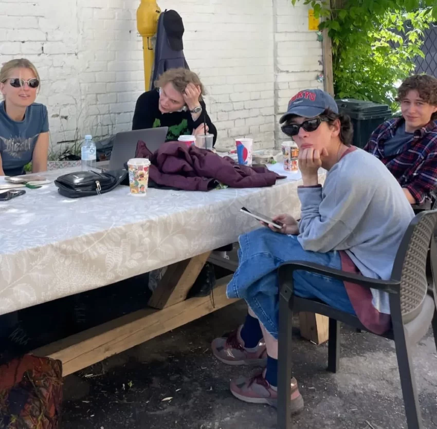 На снимке 37-летняя жена генерального директора Первого канала Константина Эрнста сидит за столом в компании 23-летнего Марка Эйдельштейна и их знакомых. "Случайное не случайное в любимом дворе", — подписала фото Насибуллина.