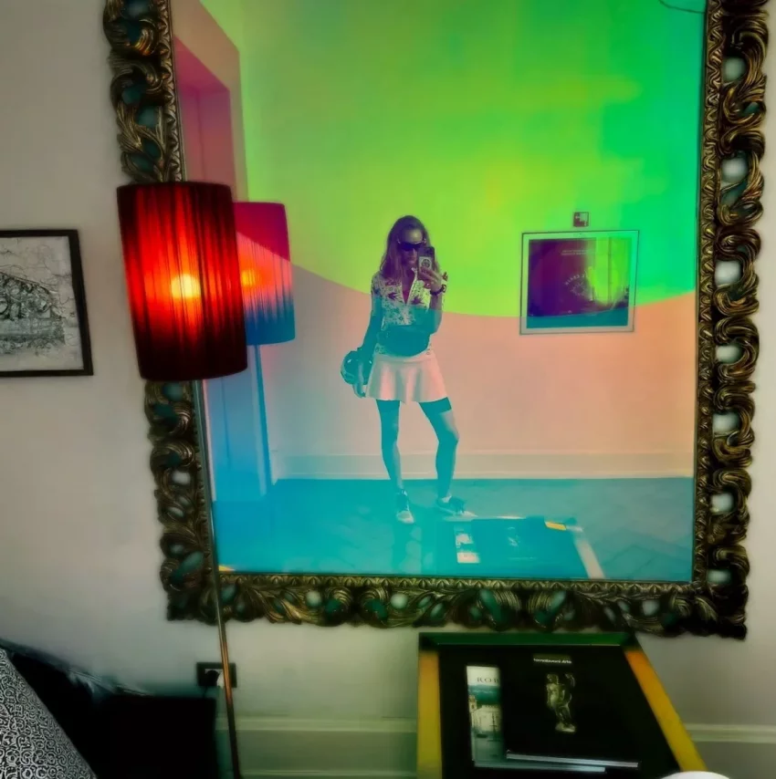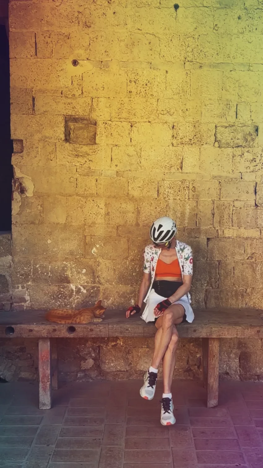 Так, Ходченкова опубликовала ролик, в котором идёт по лугу в длинном платье с разрезом до бедра, сопроводив его эмодзи в виде следов кошачьих лап. На фото она также показала окрестности и моменты своей велопрогулки.