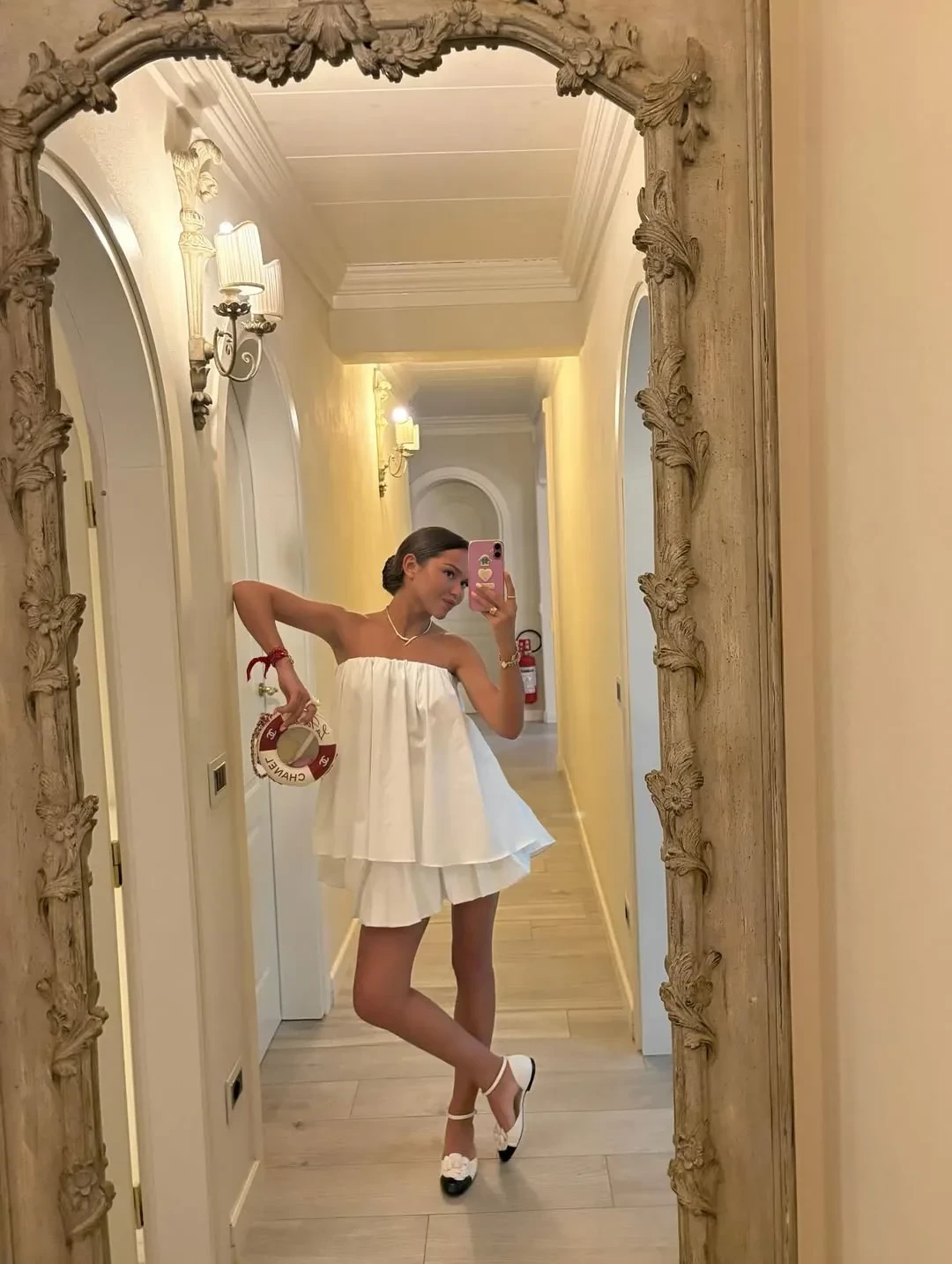 "Хорошо у нас в деревне летом. Пока паста идёт в сторис*, а не в бока — можно жить красиво", — подписала снимки Маликова, на которых она позирует в белом платье, туфлях и с сумкой Chanel.