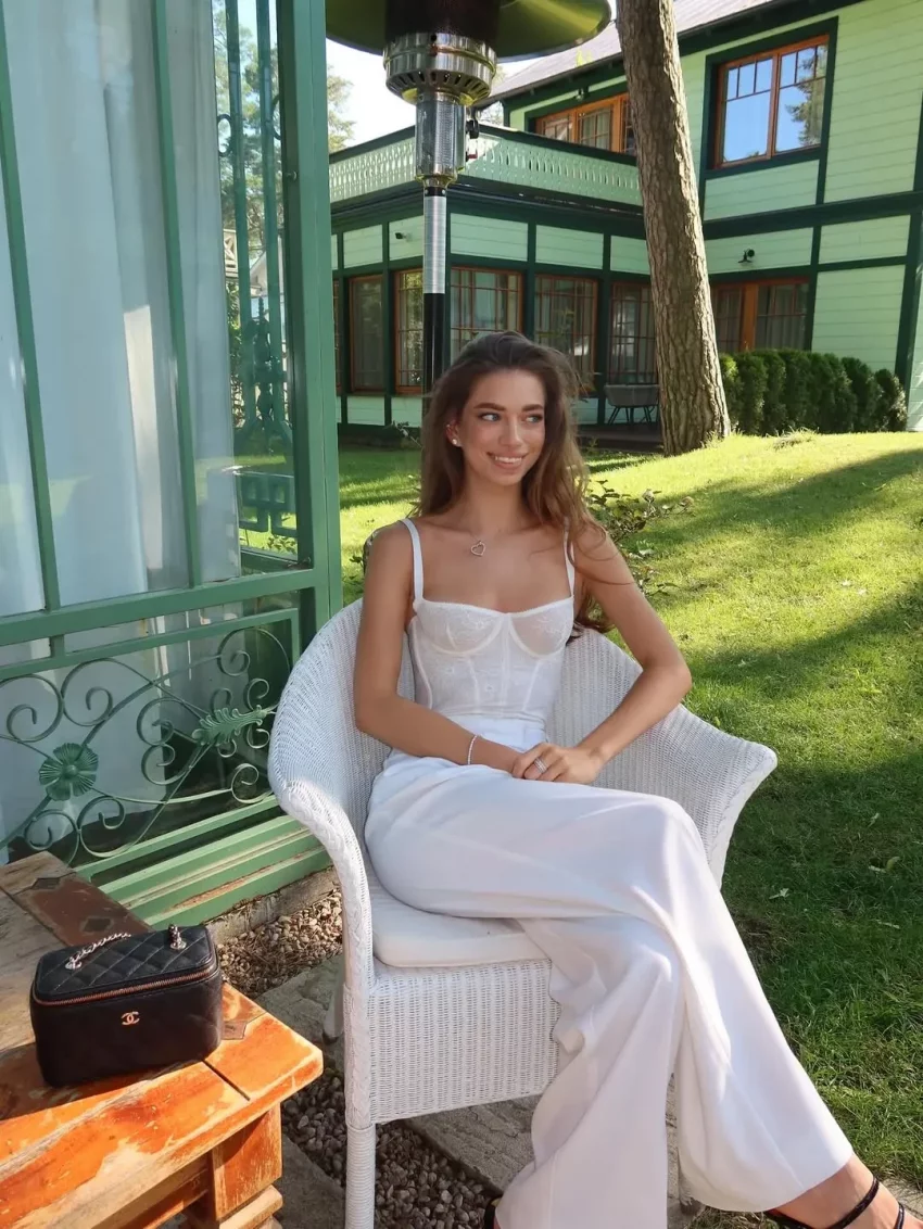 На снимках Сара позирует в кружевном корсетном топе и белых брюках, дополнив образ сумкой Chanel и ювелирными украшениями. В этом образе она сходила на день рождения подруги (или родственницы) Дарьи. На некоторых фото Сара, у которой уже два года есть бойфренд, позирует с кольцом на безымянном пальце, похожим на помолвочное.