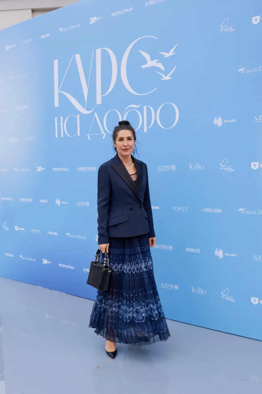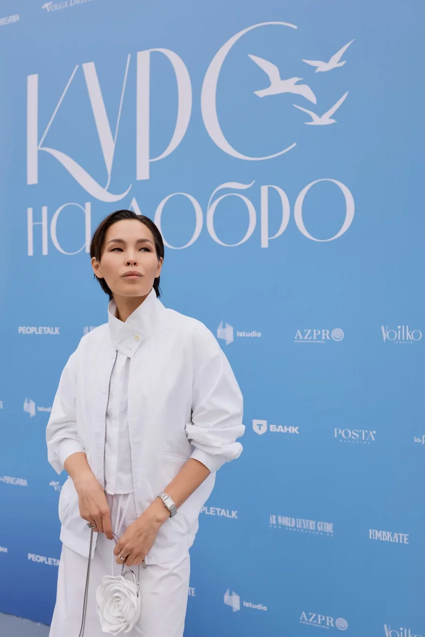 Практические все гости поддержали заявленный дресс-код и выбрали наряды в голубых и синих оттенках, отсылающих к водному формату мероприятия. 42-летняя певица Алсу выбрала для выхода в свет брючный костюм в нежно-голубой гамме, который дополнила ювелирными украшениями.
