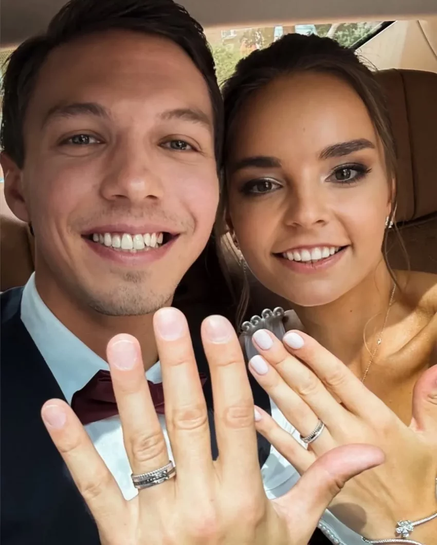 26-летняя гимнастка Дина Аверина вышла замуж за фигуриста Дмитрия Соловьёва, с которым она познакомилась на шоу "Ледниковый период" в 2024 году. О помолвке пары стало известно в феврале. Свадебная фотосессия молодожёнов состоялась в отеле "Балчуг Кемпински".
