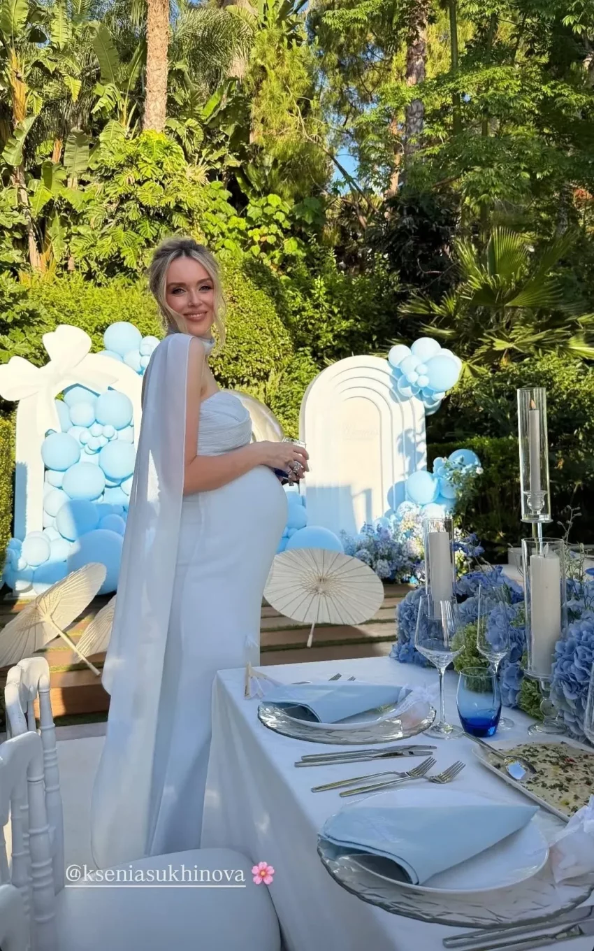 37-летняя Ксения Сухинова, победительница конкурса красоты "Мисс мира — 2008", устроила вечеринку baby shower в честь рождения будущего ребёнка.