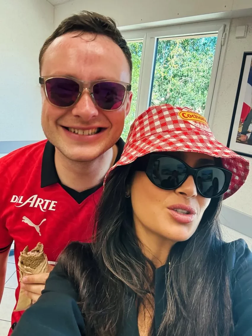 Звёздная семья посетила часть гонки, проходившей в деревне Треверьен в регионе Бретань, откуда родом отец Франсуа-Анри Пино, миллиардер Франсуа Пино. "В Треверьене с семьёй наслаждаемся традиционными блинчиками на "Тур де Франс", — подписала фотографии Сальма, на которых она позирует вместе с родными и зрителями.