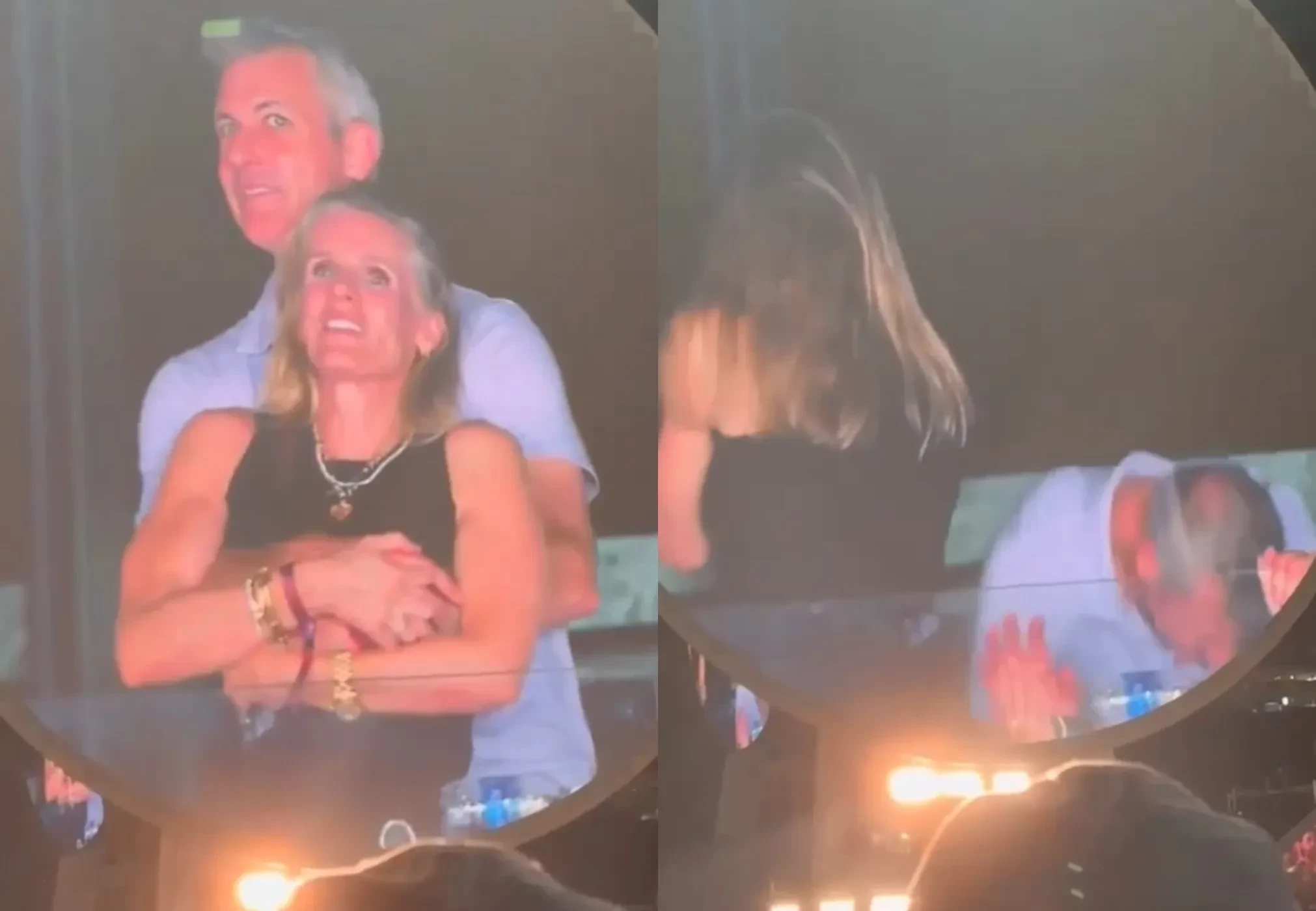 Во время выступления группа развлекала зрителей игрой "камера поцелуев" (популярная забава на массовых мероприятиях, когда на экран выводят случайные пары). В какой-то момент оператор запечатлел пару, обнимающуюся в VIP-ложе. Но вместо привычной реакции влюблённые повели себя странно: девушка резко закрыла лицо руками и отвернулась, а её спутник быстро присел, стараясь спрятаться за ограждением. Лидер Coldplay Крис Мартин прокомментировал это в прямом эфире: "О, посмотрите на этих ребят. Либо они кому-то изменяют, либо очень стеснительные".