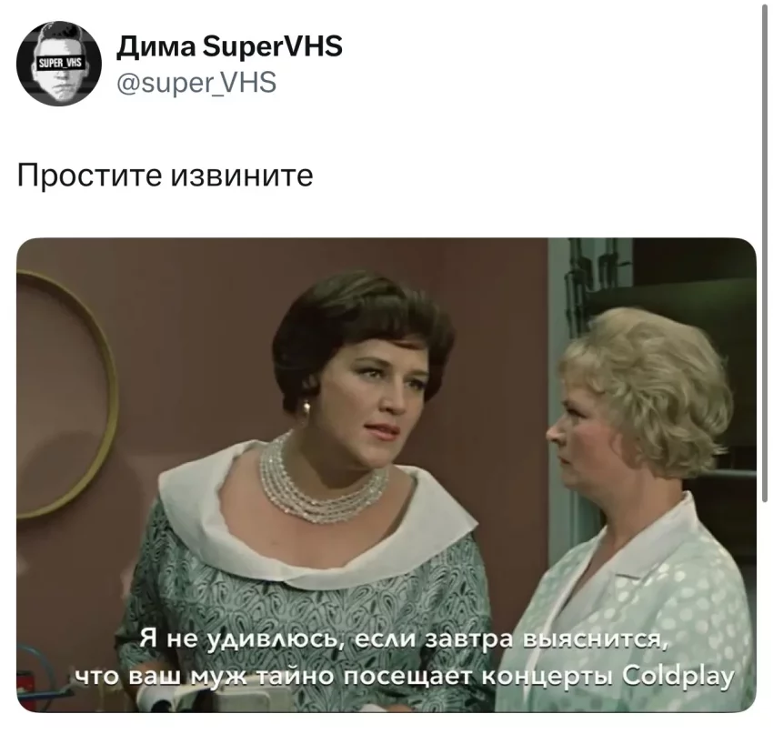 Поддельное заявление Энди БайронаПримечательно, что по данным Variety, широкую огласку получил ещё один фейковый пост — якобы от имени Coldplay. В нём утверждалось, что группа введёт "зоны без камер" на будущих концертах, чтобы зрители могли спокойно проводить время друг с другом.