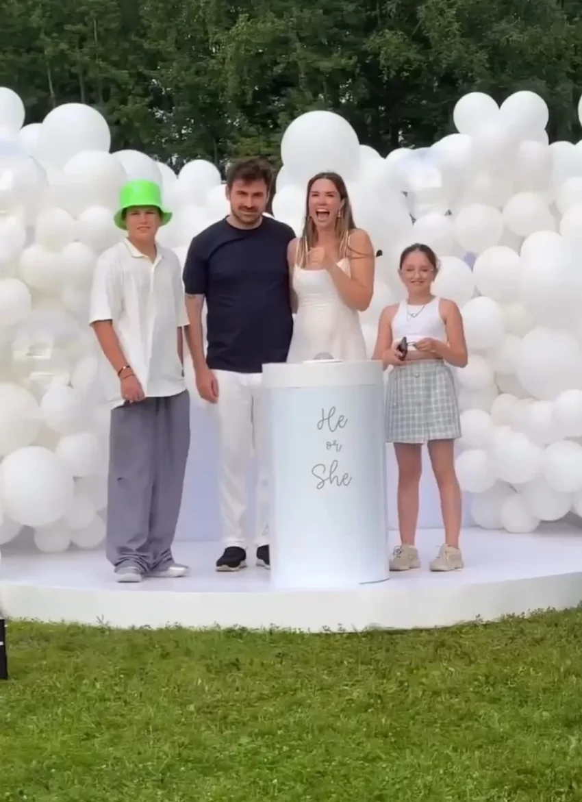 В своих соцсетях Агата опубликовала фотографии и видео с праздника, на который пригласила Наталью Земцову, Анну Банщикову, Елену Дудину и других звёздных друзей. Перед тем, как раскрыть приглашённым главную интригу вечера, она предложила гостям отдать свой голос за мальчика или девочку. Сама Муцениеце проголосовала за девочку. Именно её, скорее всего, звезда и ждёт, судя по попавшим на видео деталям (розовая сахарная вата, розовый букет цветов в руках у Петра Дранги). Однако официального объявления Муцениеце ещё не делала.