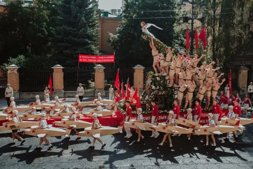 Новый фильм Учителя посвящён композитору Дмитрию Шостаковичу. В первой сцене, которую снимали в центре Санкт-Петербурга, режиссёр воссоздал парад физкультурников 1930-х годов, где на вершине пирамиды возвышается Полина Цыганова. Никита Кологривый сыграл в картине композитора Бориса Тихонова, а роль самого Шостаковича досталась Олегу Савцову.