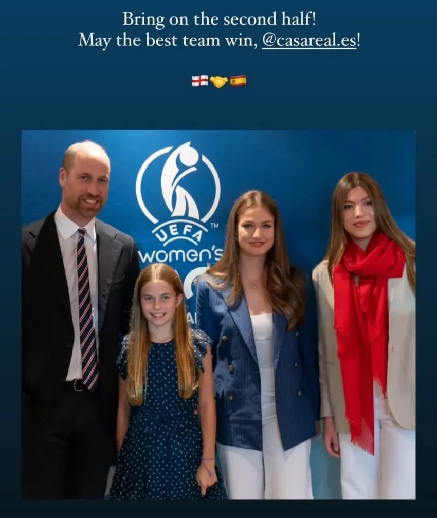 Чтобы поддержать соотечественниц, в Швейцарию прилетели принц Уильям с 10-летней дочерью принцессой Шарлоттой. В официальном инстаграме* принца и принцессы Уэльских они пожелали удачи команде своей страны. А за испанскую сборную пришли поболеть 19-летняя наследница испанского престола Леонор и её младшая сестра, 18-летняя инфанта София.
