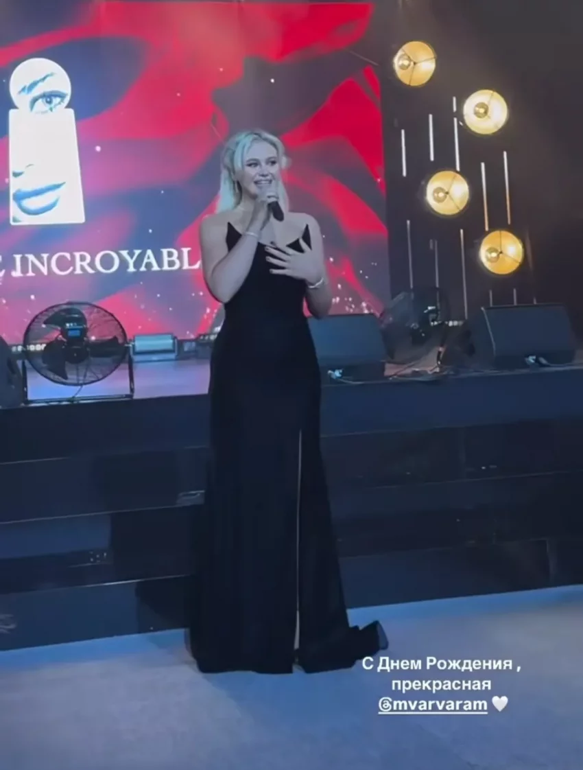 Гости праздника нарядились в вечерние платья: Алеся Кафельникова позировала в нуарном образе Ranevsky с декольте, а 27-летняя дочь пресс-секретаря президента России Дмитрия Пескова вышла в свет в платье в бельевом стиле. На вечеринке выступили группы "Иванушки International", 5sta Family и певица Нюша, а после Варвара зажгла свечи на праздничном (и популярном среди инфлюенсеров) торте.
