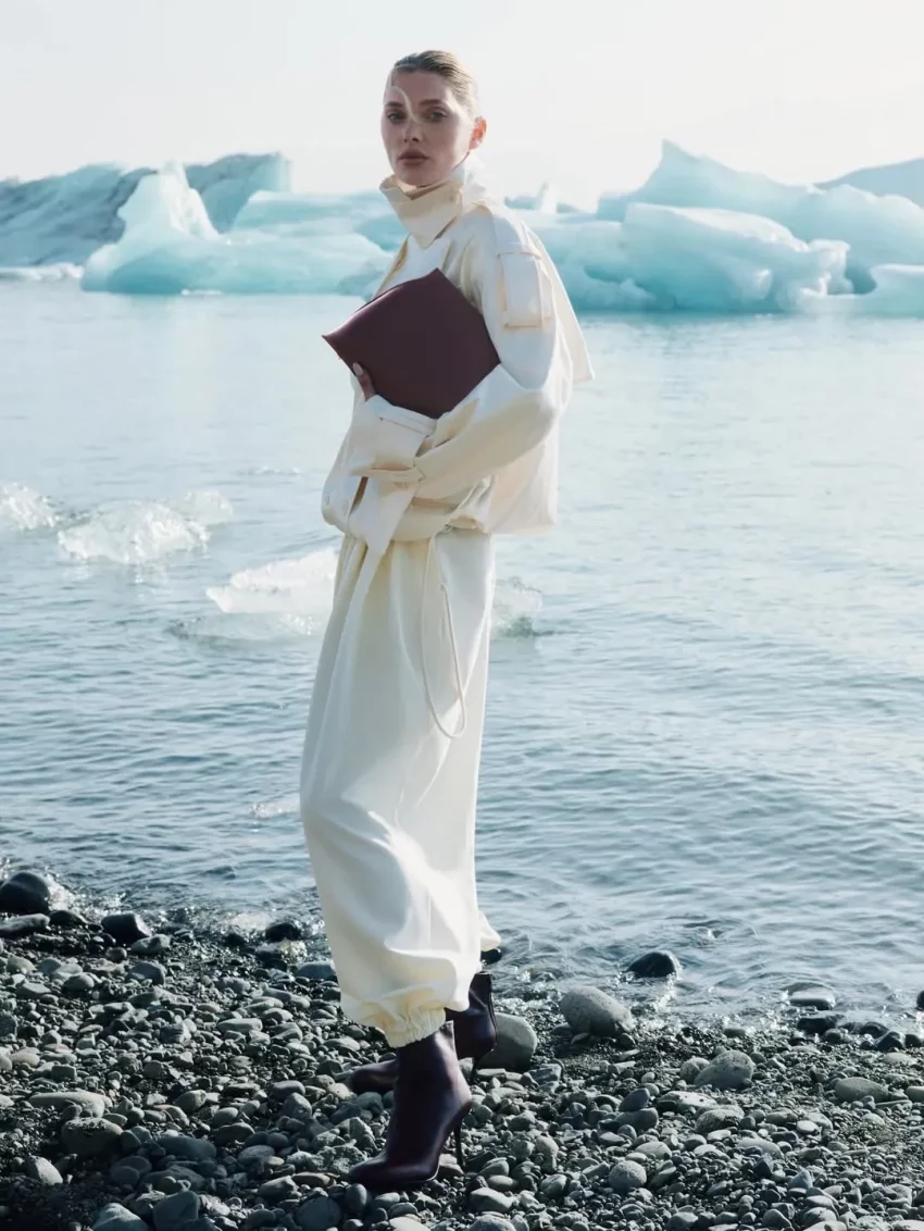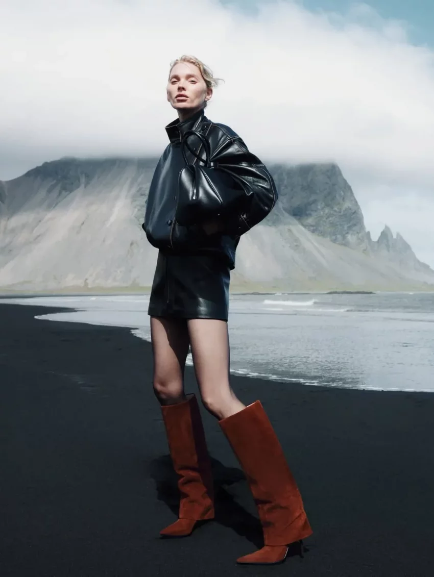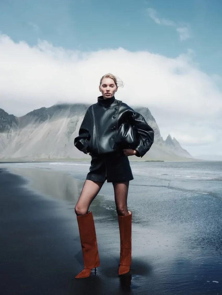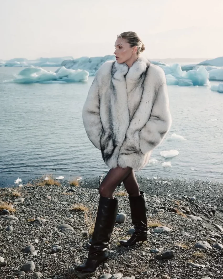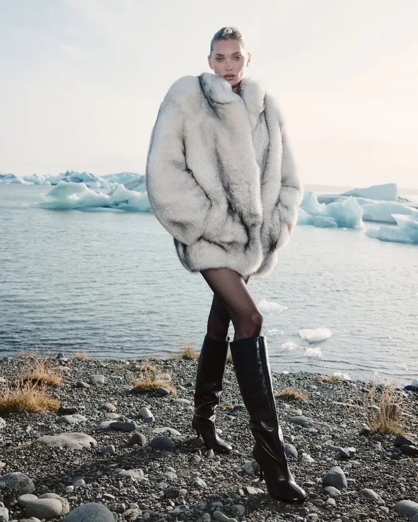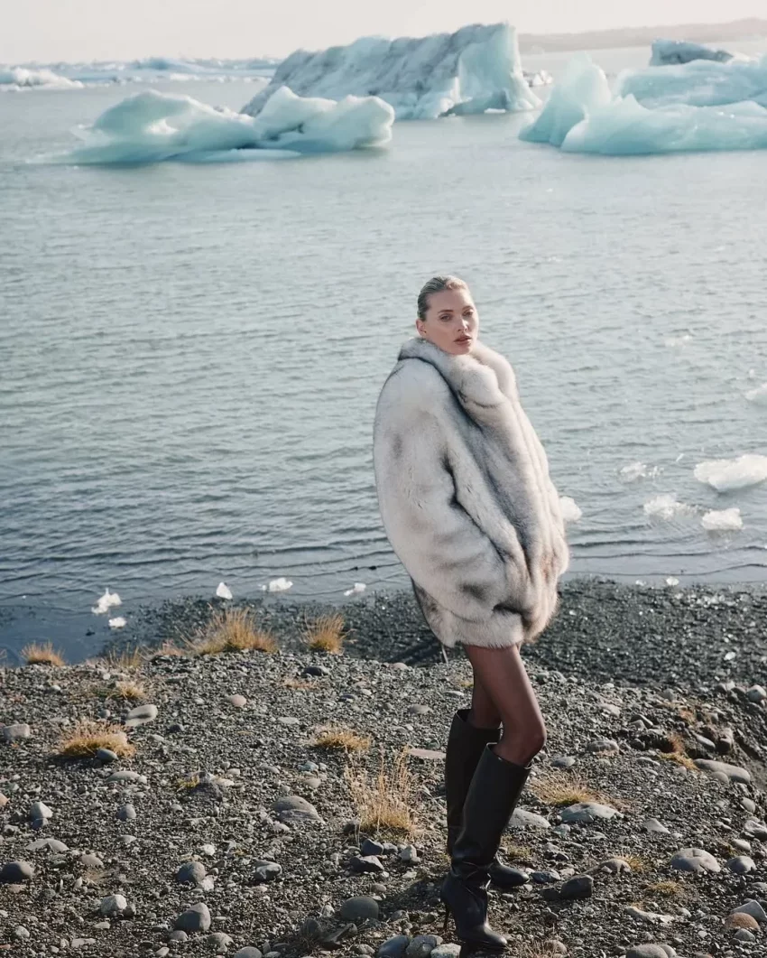 36-летняя шведская топ-модель примерила несколько образов Ekonika. Эльза позировала на фоне местной природы в короткой шубе и сапогах (в стиле slavic bimbo), кожаной куртке и плаще, а также в лоферах с мехом и куртке молочного цвета.