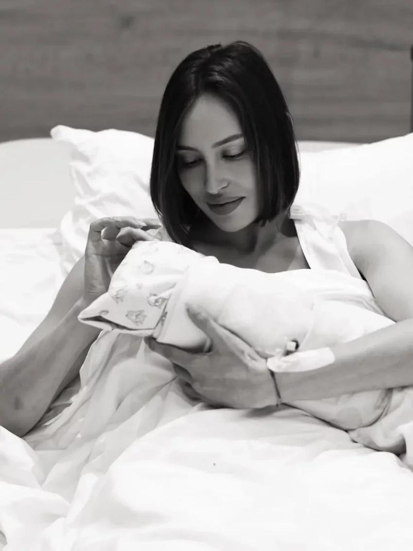 В подборку вошёл кадр, на котором Валентина прижимает дочь к себе сразу после родов, а также снимок, на котором она кормит малышку грудью.