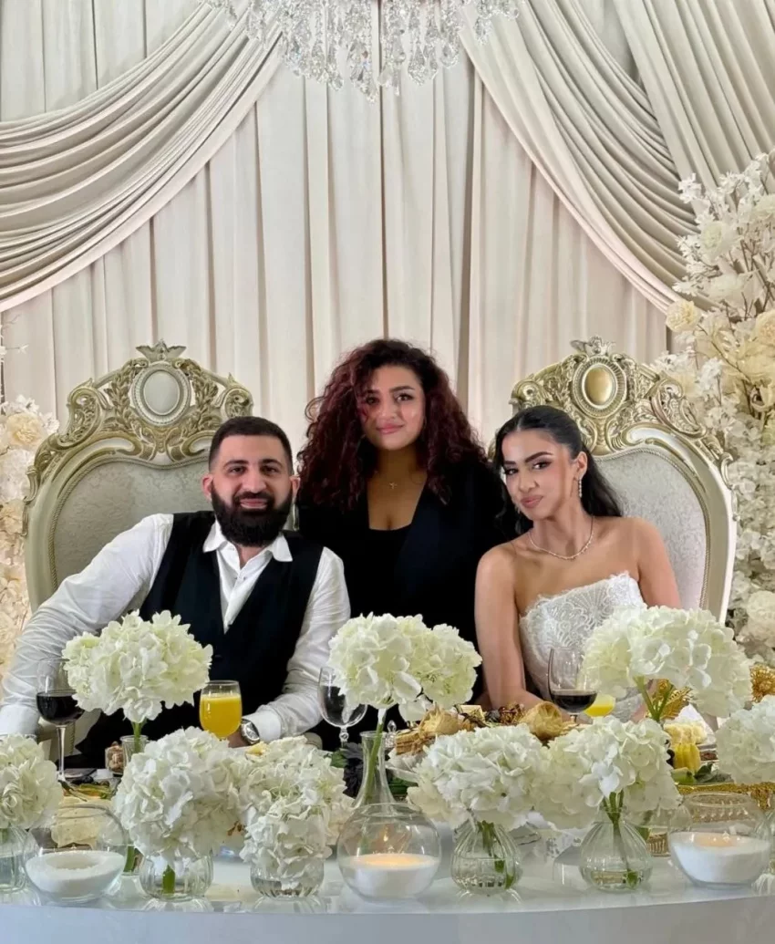 На сцене выступали рэпер Баста (настоящее имя — Василий Вакуленко), Зара, Navai и Сосо Павлиашвили. Гостей, среди которых были замечены комики Алексей Щербаков, Азамат Мусагалиев и Иван Абрамов, а также звёздный визажист Гоар Аветисян, угощали виски Macallan (по 10 тысяч рублей за бутылку). Невеста сменила несколько нарядов. Стоит также отметить, что празднование растянулось на несколько дней, а часть церемонии прошла в соответствии с езидскими традициями.