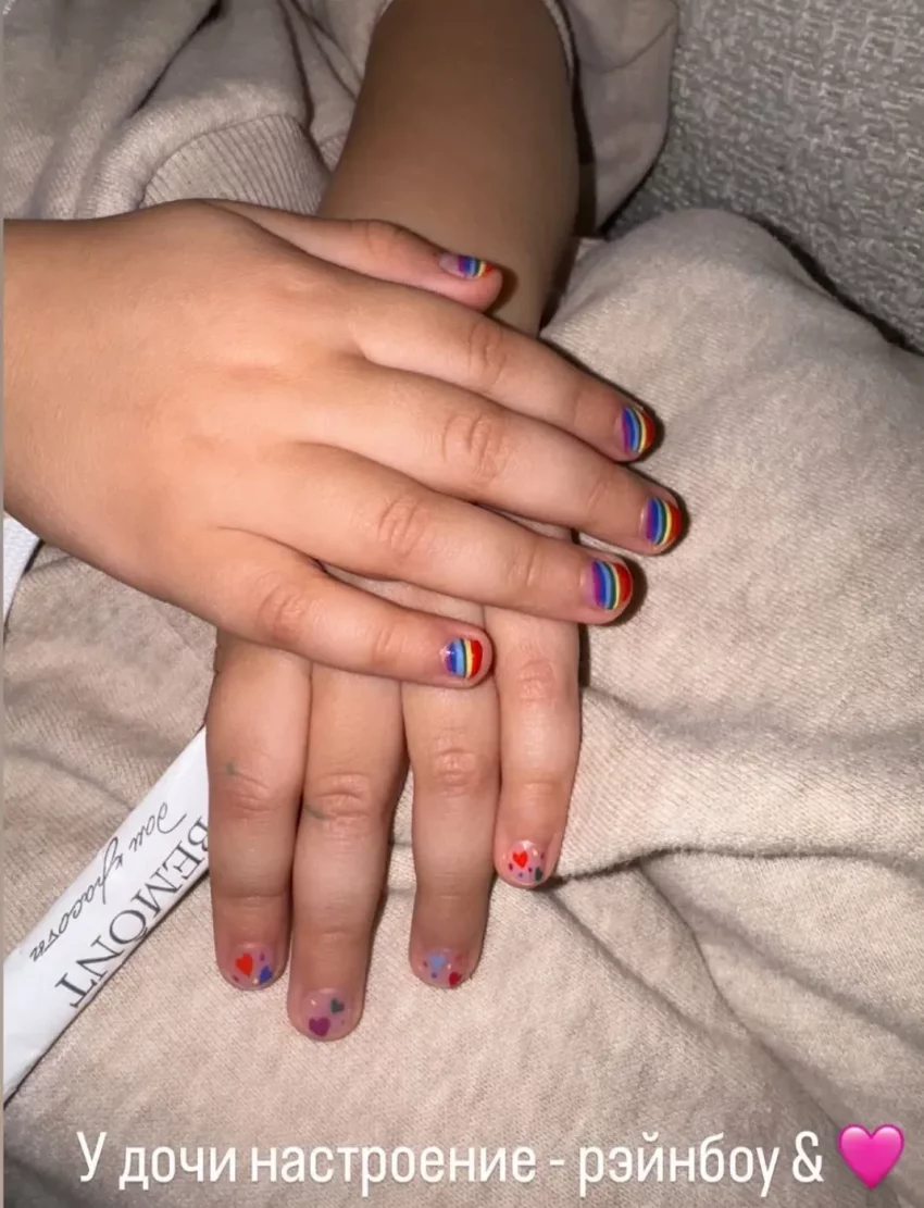 Алеся КафельниковаАлеся КафельниковаАлеся КафельниковаАлеся КафельниковаАлеся КафельниковаВ соцсетях Алеся также показала новый маникюр своей четырёхлетней дочери Киары, которая любит ходить в салоны красоты вместе с матерью. В этот раз, как отметила Алеся, девочка выбрала разноцветный лак для ногтей.