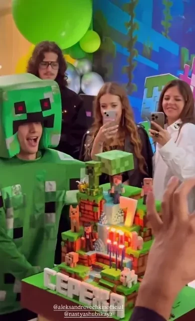 Праздник прошёл в формате караоке, гостей угощали тортом, стилизованным под игру Minecraft.