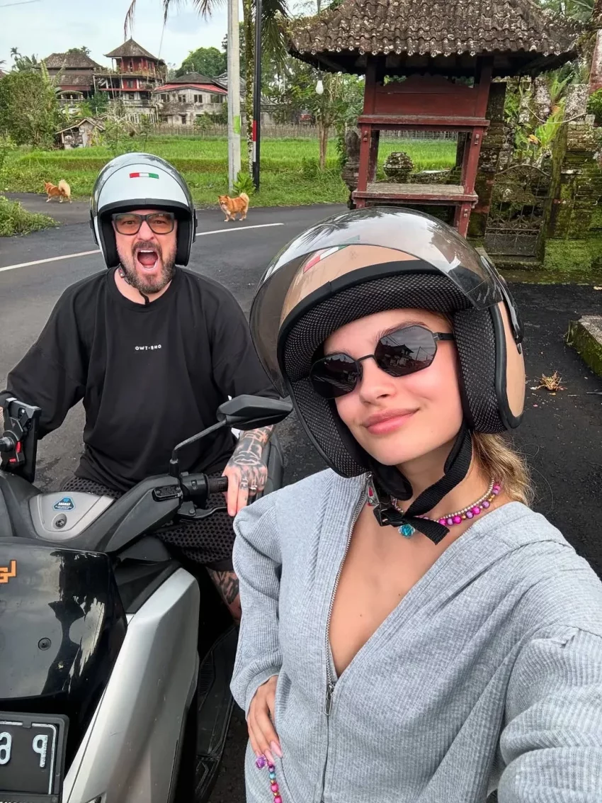 На отдыхе пара, брак которой вызвал бурные обсуждения в сети, катаются на мопеде, проводят время на пляже, обедают в местных ресторанах и просто наслаждаются жизнью. "Сказочное Бали", — подписали фотографии супруги.