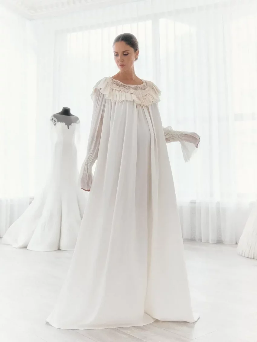 Агата Муцениеце, которая на днях вышла замуж за музыканта Петра Дрангу, показала свой свадебный образ. Платье для 36-летней актрисы, которая находится на поздних сроках беременности, создавали в московском бутике, часть деталей были изготовлены вручную.