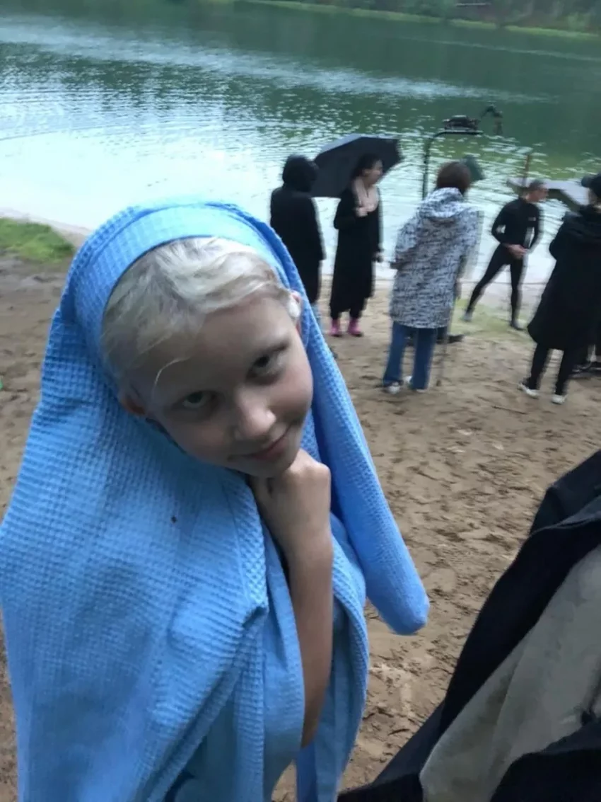 Дочь Алексея Учителя и Юлии Пересильд Анна Пересильд отпраздновала День российского кино. В честь этого она опубликовала в своём инстаграме* архивные снимки со съёмок.