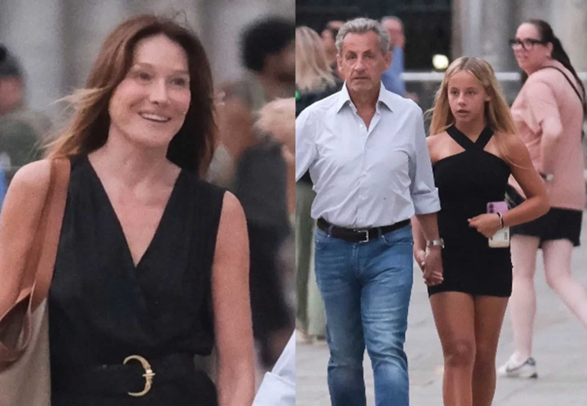 Николя Саркози с женой Карлой Бруни и их дочерью, которая недавно стала звездой соцсетей, засняли во время отдыха в Венеции. Фото пары, сделанные папарацци, появились в сети.