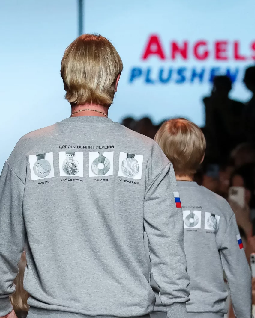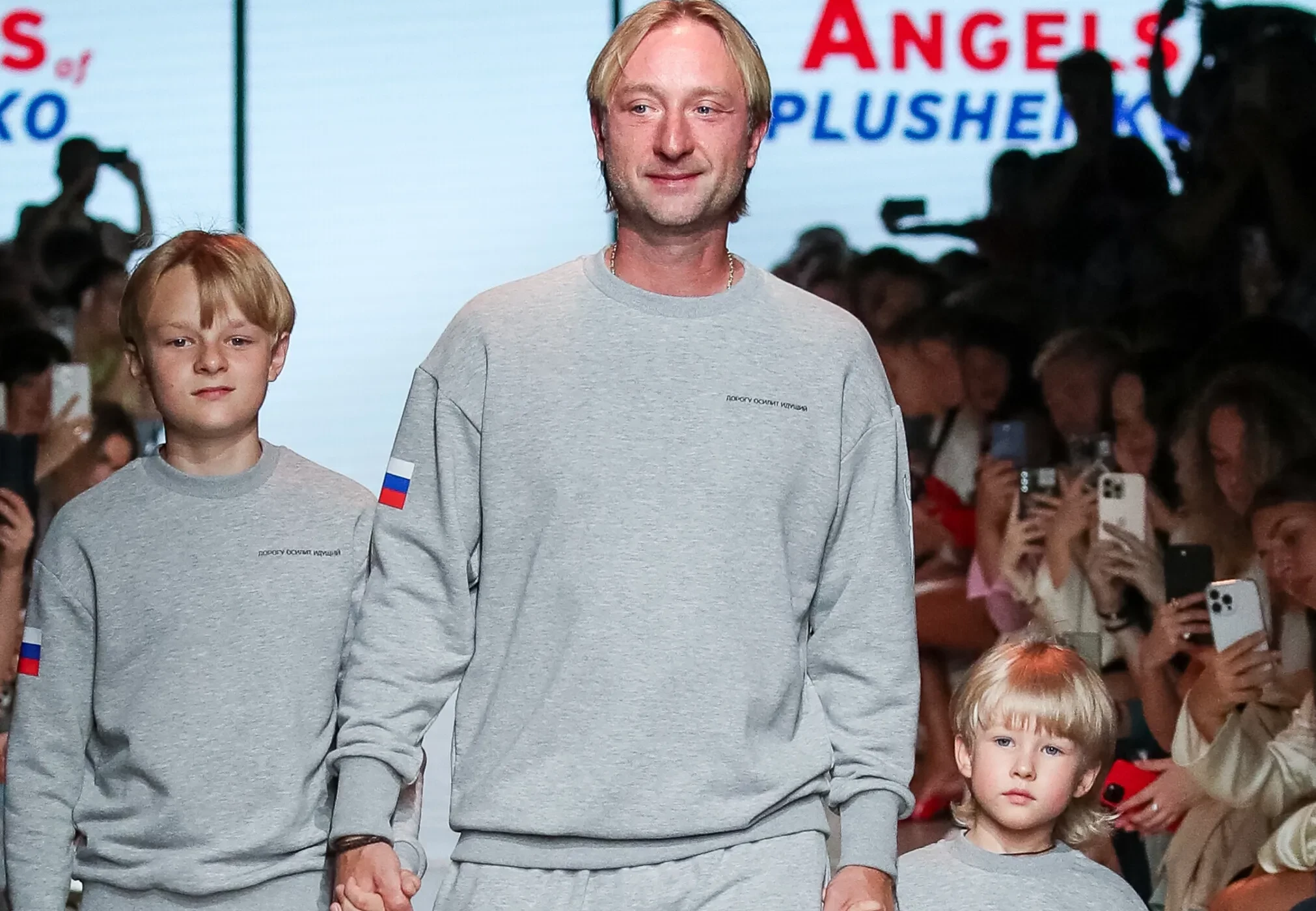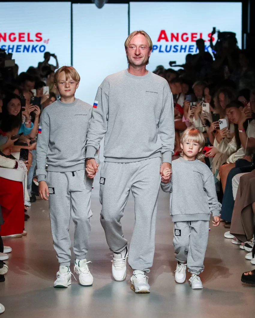 Евгений Плющенко с сыномЕвгений Плющенко с сыновьямиЕвгений Плющенко с сыновьямиКроме коллекции Плющенко, в рамках показа представили свою коллаборацию супруги Александра Трусова и Макар Игнатов. Они лично показали лимитированную мерч-коллекцию "Игнатовы", в которую вошли футболки, олимпийки и другая спортивная одежда. Этот показ стал их первым выходом в свет после рождения сына Миши.