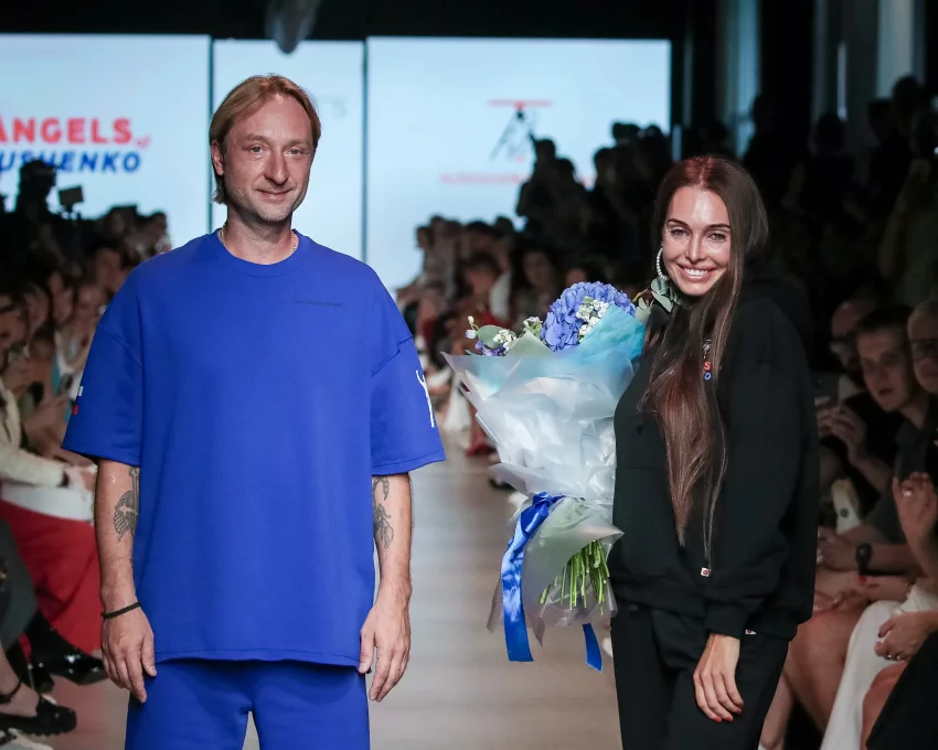 Евгений Плющенко и Екатерина ДавыдоваЕвгений Плющенко говорил о том, что хочет создать свою коллекцию ещё в марте этого года, хотя больше всего в их семье модой увлекается 50-летняя Яна Рудковская. Она любит кутюр, часто посещает показы, а также коллекционирует люксовые вещи. Кроме того, она несколько раз была на зарубежных Неделях мод, в отличие от её мужа, который всё время отдавал спорту.