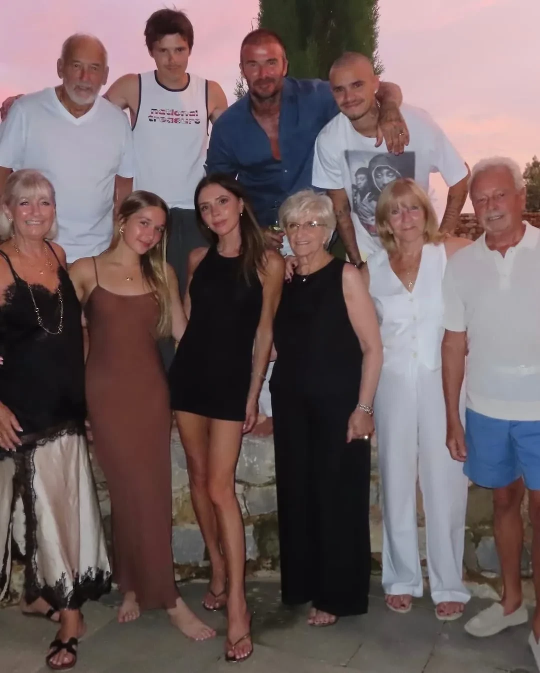 Дэвид и Виктория Бекхэм с тремя детьми и родителями