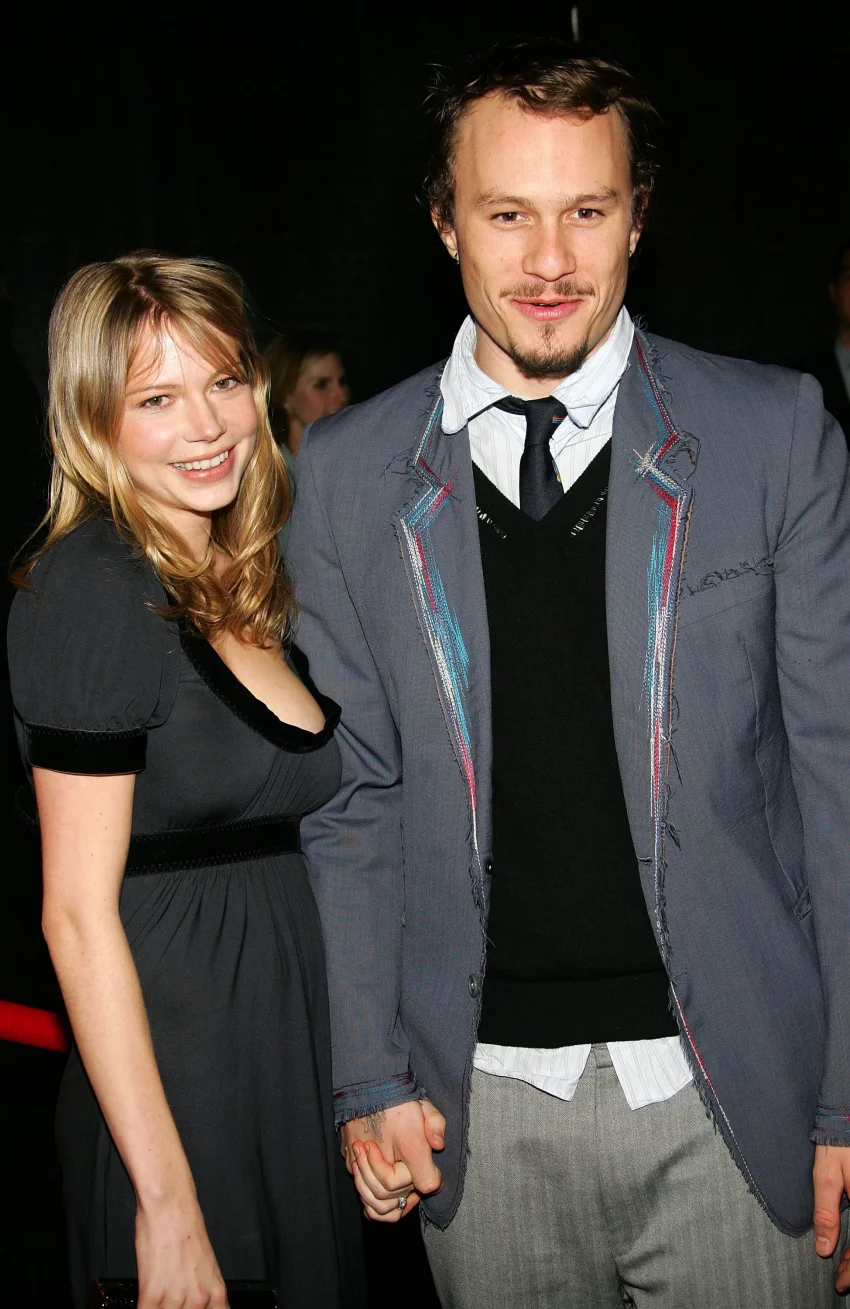 Мишель Уильямс и Хит Леджер в 2005 годуХит Леджер в 2001 годуМишель Уильямс с 2020 года замужем за режиссёром Томасом Кейлом. У пары трое детей. Младший ребёнок появился на свет весной этого года с помощью суррогатной матери. Её актриса публично поблагодарила за рождение дочери.
