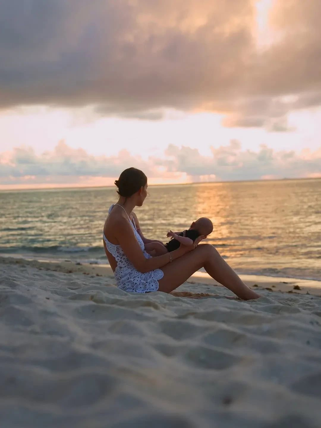 На снимках модель позирует на песчаном пляже на фоне океана и закатного неба. Дочку, которую зовут Эмма, она держит на руках. “Моя маленькая вселенная, моя Эми”, — подписала Валентина кадры. Её публикацию лайкнули многие известные личности, включая мать Тимати Симону Юнусову.