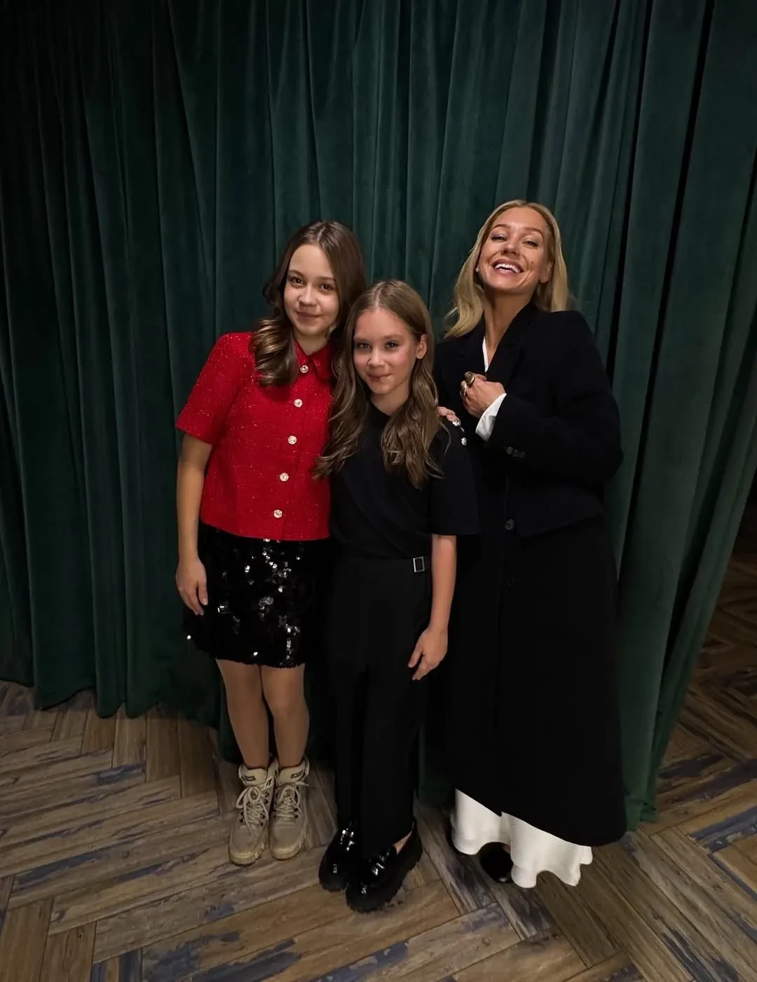 Асмус вышла на дорожку в белом платье с чёрным корсетом и дополнила образ длинным пальто. 11-летняя Анастасия в чёрной футболке и брюках в тон позировала рядом со звёздной матерью, актрисой из фильма Екатериной Темновой и режиссёром Кириллом Кузиным. "Наконец-то! Выходит редкий фильм, который я могу показать своей дочери", — прокомментировала премьеру Кристина Асмус.