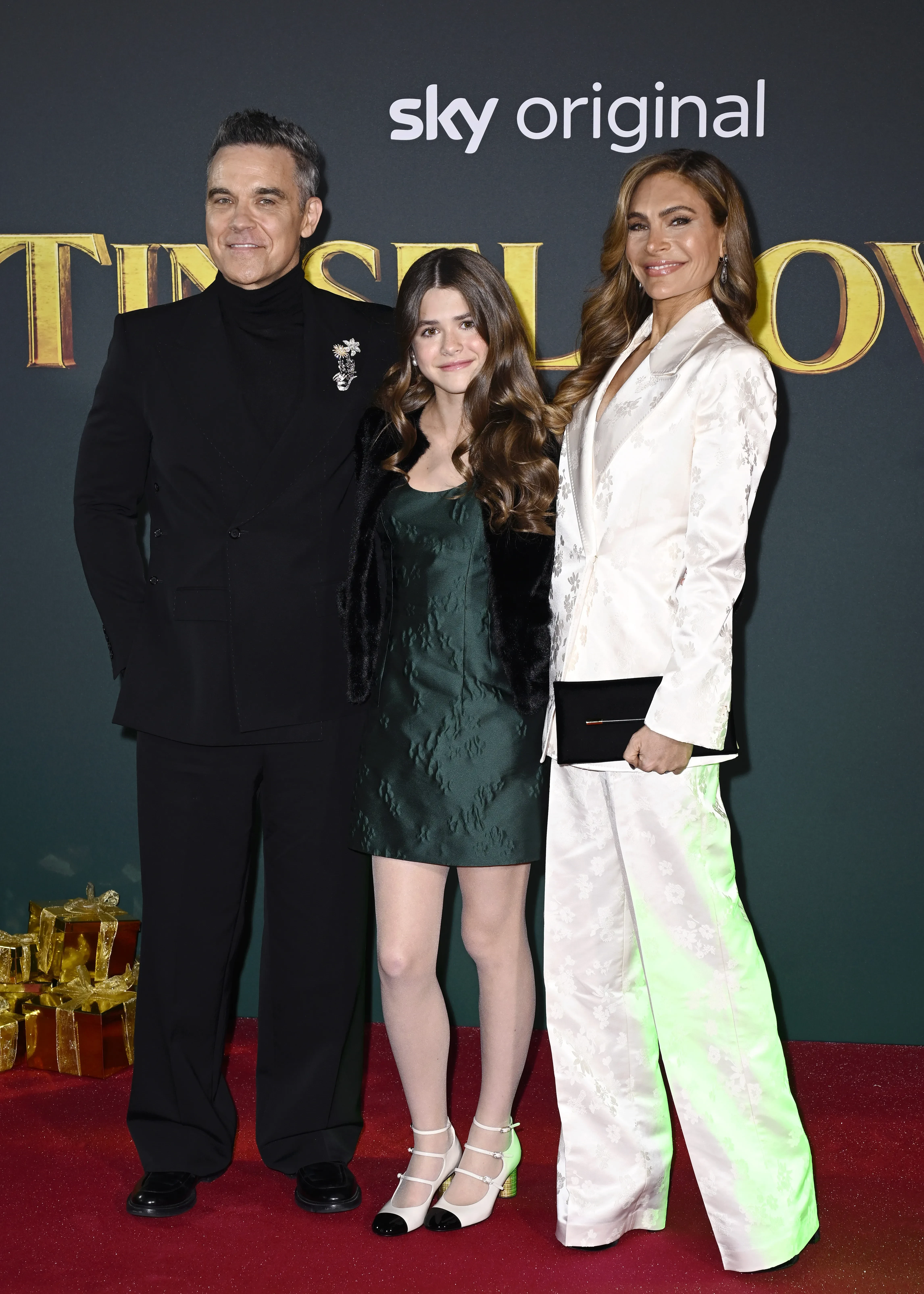 Робби Уильямс с женой Айдой Филд и старшей дочерью появились на премьере фильма "Город мишуры", в котором 13-летняя Теодора дебютировала в качестве актрисы. Выход девочки на красную дорожку также стал для неё первым в жизни.