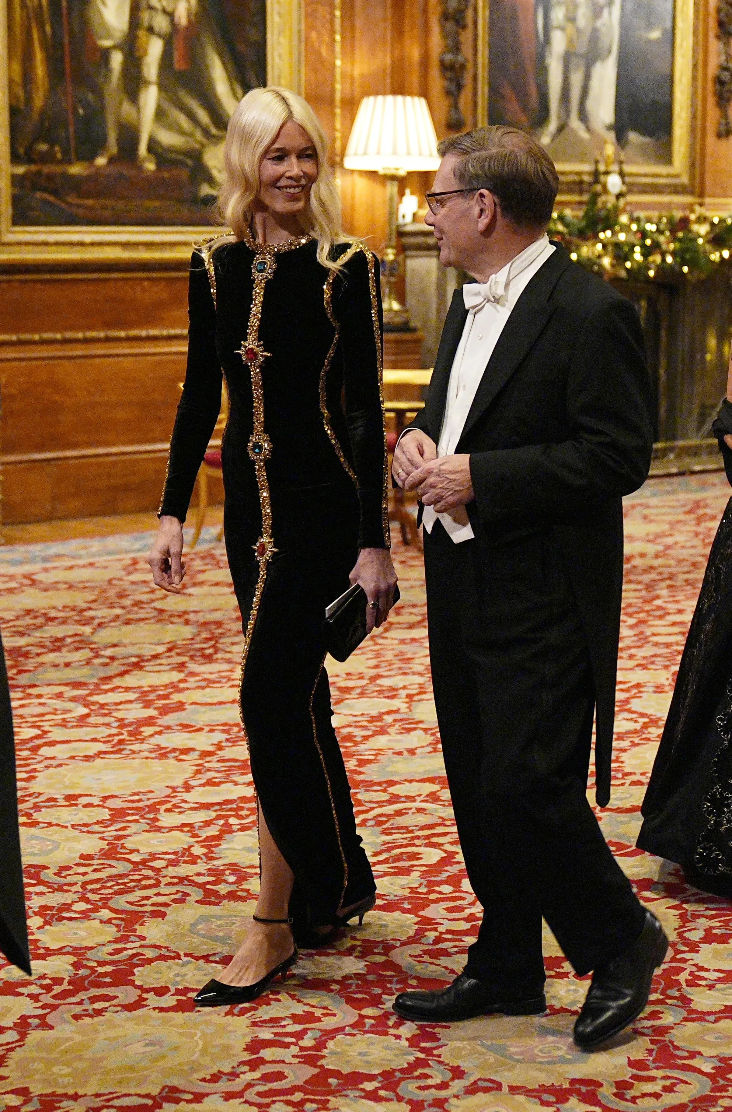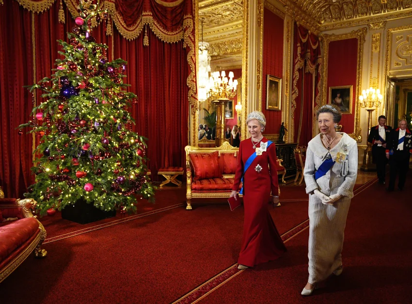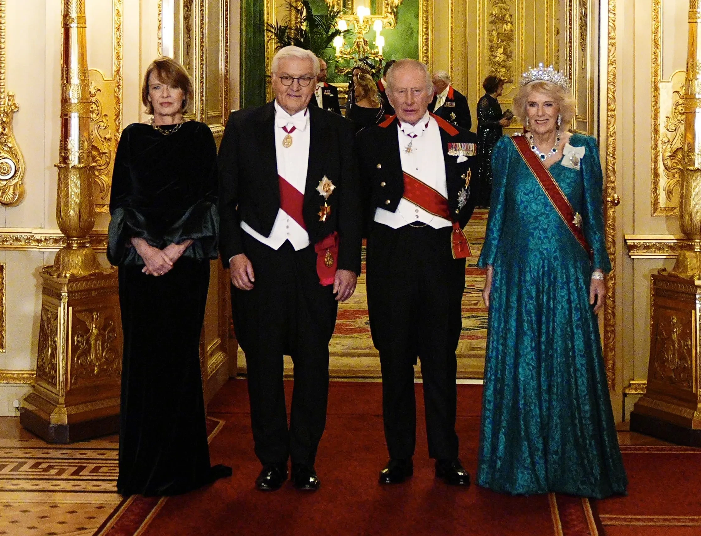 В Виндзорском замке состоялся государственный банкет в честь визита президента Германии Франка-Вальтера Штайнмайера и его супруги Эльке Буденбендер. На мероприятии собрались главы государств, члены монаршей семьи и другие гости. Среди них: принц Уильям с супругой Кейт Миддлтон, король Великобритании Карл III и королева Камилла, сестра королевы Елизаветы II принцесса Анна, супермодель Клаудия Шиффер, премьер-министр Великобритании Кир Стармер.