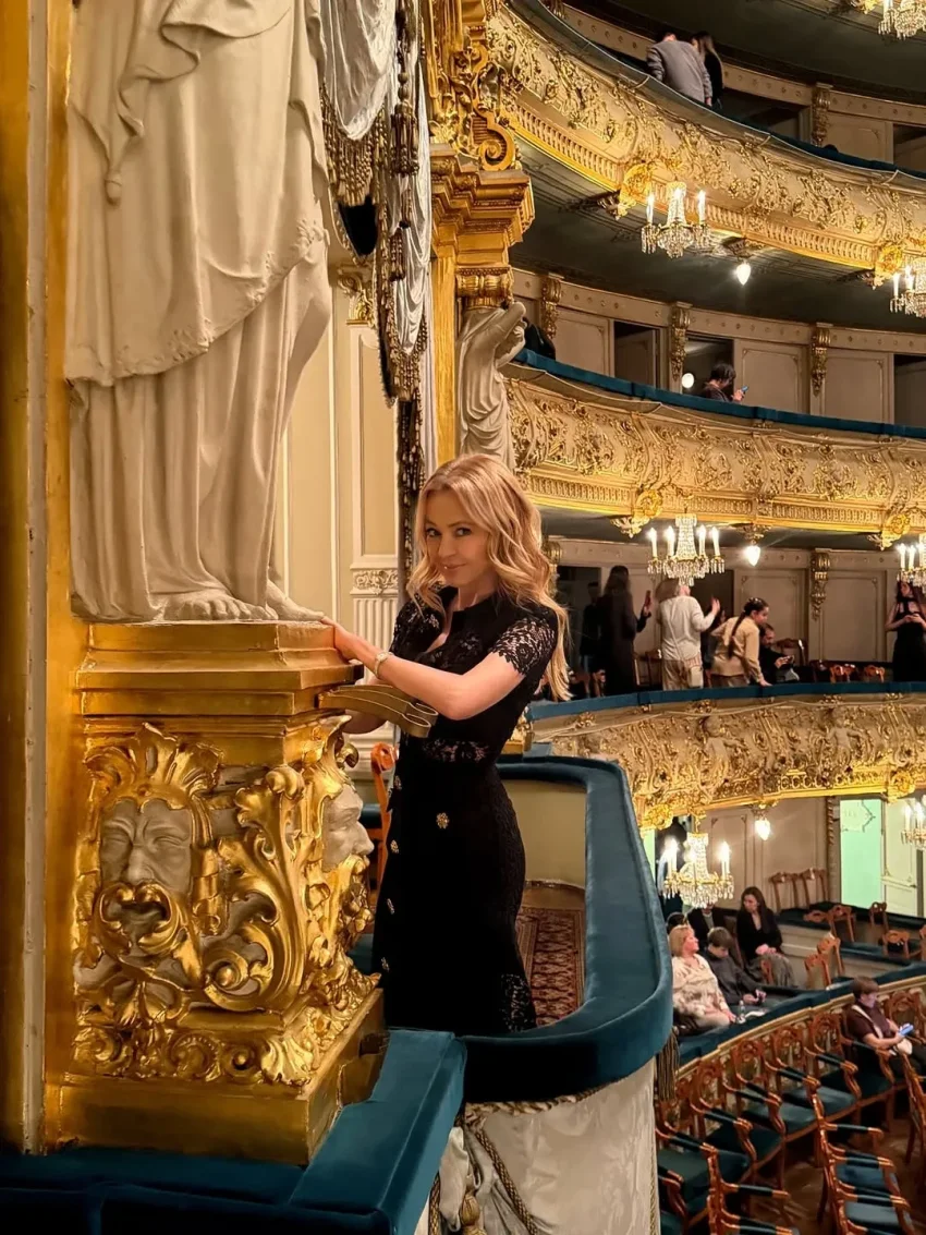 Яна РудковскаяТем временем 51-летняя Виктория Шелягова опубликовала фото из Большого театра, куда она тоже пришла в образе total-black. Супруга бизнесмена Олега Шелягова позировала на фоне сцены главного московского театра в облегающем платье You Wanna и меховой шапке. На спектакль Шелягова отправилась прямиком из села Холуй, где провела выходные. "Люблю контрасты в жизни. Из Холуя прямиком с дороги в Большой театр", — написала она.