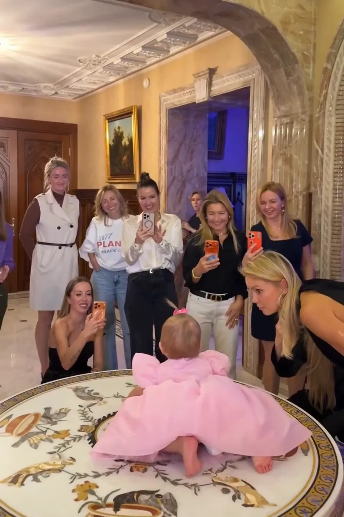 На празднике именинница была одета в розовое платье с блестящими пуговицами, а её мать Виктория позировала рядом в коричневом наряде и бриллиантовых серьгах. Нина задула свечу на праздничном торте вместе со своей 21-летней сестрой Даной и её дочерью Миллой.