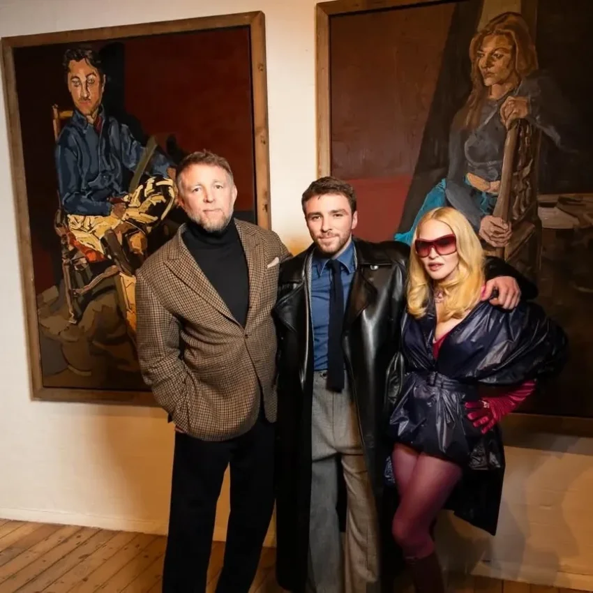 Гай Ричи, Рокко Ричи и Мадонна67-летняя Мадонна пришла в галерею вместе со своим 29-летним бойфрендом Акимом Моррисом и приёмными дочерьми — 13-летними близнецами Стеллой и Эстер. Бывший муж певицы, 57-летний Гай Ричи, появился в компании своей супруги Джеки Эйнсли, с которой воспитывает ещё троих детей.
