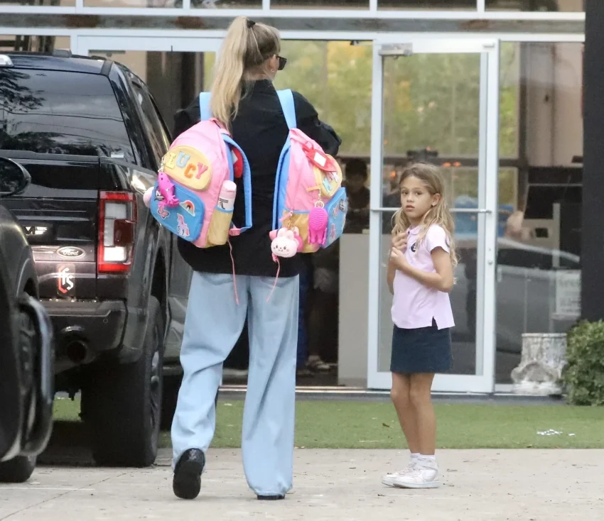 Папарацци засняли близнецов Николаса и Люси, которым буквально на днях исполнилось восемь лет, а также их младшую пятилетнюю сестру Машу. Пока девочки выходили из автомобиля и направлялись в здание, Анна вытаскивала из багажника их яркие рюкзаки, на которых были написаны их имена, чтобы помочь донести их. При этом Николас сам нёс свой рюкзак.