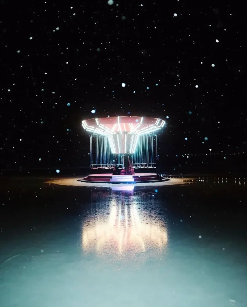 На одном из снимков Жукова позирует на фоне нарядной ёлки, а на другом запечатлён один из её сыновей с конфетами "Мишка на Севере". Вероятно, семья остановилась в местном отеле Kulm, который основательница музея "Гараж" отметила на публикации. Она также выложила фото зеркальной розовой карусели — новой работы художника Карстена Хеллера, установленной около отеля.