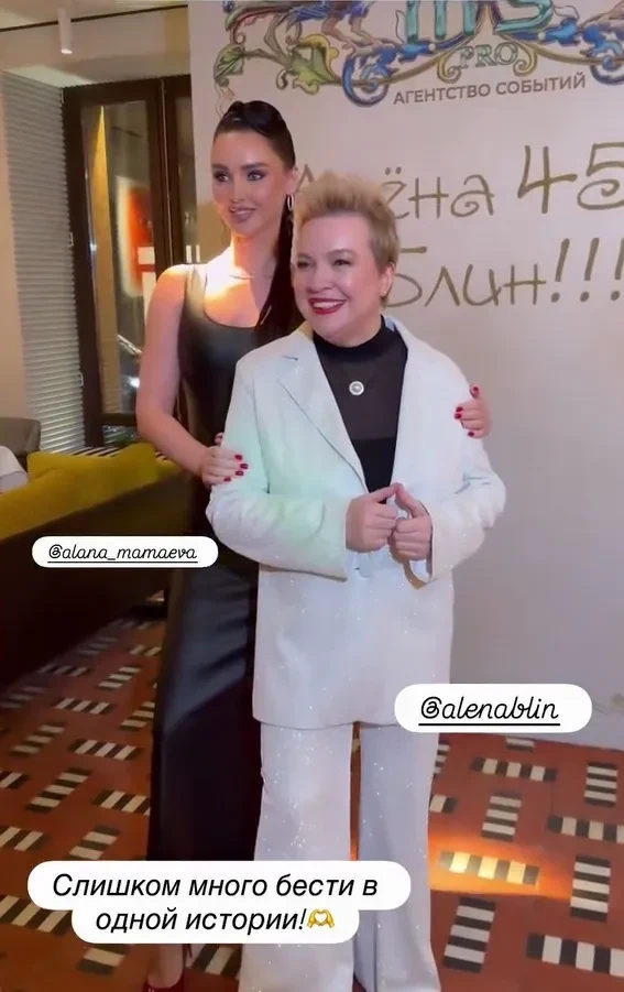 Накануне в одном из столичных ресторанов состоялась вечеринка в честь 45-летия светской журналистки, ведущей шоу "Алёна, блин!" Алёны Жигаловой. Гостями вечера стали Филипп Киркоров (который лично спел в караоке один из своих хитов), Анна Седокова, Лера Кудрявцева, Ани Лорак.