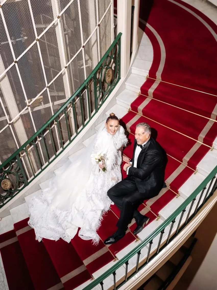 Невеста была в платье от дизайнера Александра Сирадекиана. Бракосочетание прошло в популярном среди селебрити Дворце бракосочетания № 1 на Английской набережной Санкт-Петербурга. Молодожёны также устроили фотосессию в местном пятизвёздочном отеле "Астория" и посетили храм.