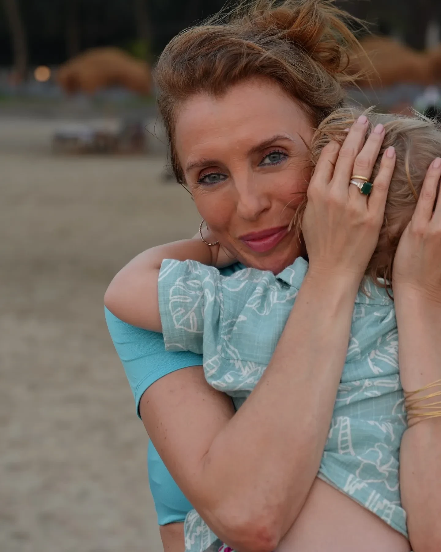 На фото 57-летняя Бондарчук позирует одна, в облегающем голубом комплекте из юбки и топа, а также с двухлетним сыном Петром, сидя на лежаке в бикини. Её 51-летний супруг Сергей Харченко и падчерица Юнна в этот раз в объектив камеры не попали. В подписи к публикации Светлана оставила эмодзи с солнцем.