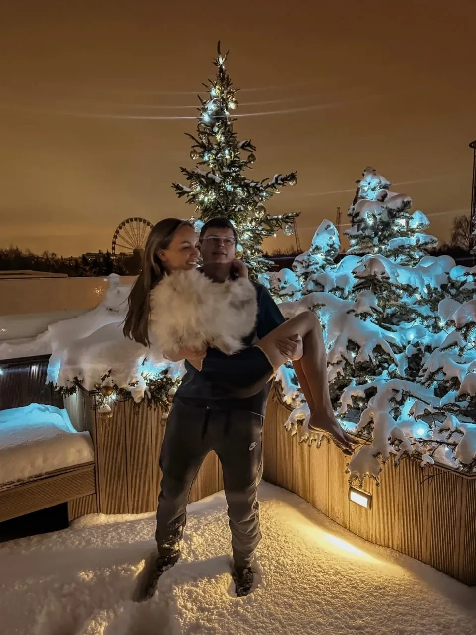 На одном из фото 44-летний Аршавин заснят возле новогодней ёлки с дочерью на руках. Сам экс-футболист опубликовал в соцсети снимок, на котором держит возлюбленную на руках на фоне зимнего пейзажа.