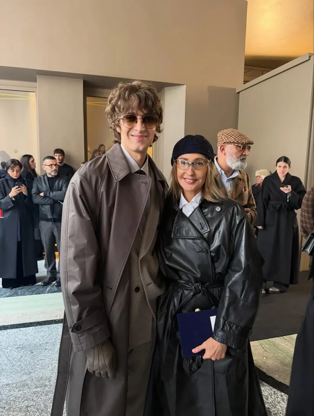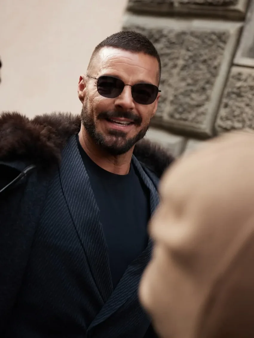 54-летний Рики Мартин для редкого выхода в свет выбрал костюм бренда и пальто с мехом в тон, а 52-летняя частая гостья модных показов Оксана Бондаренко пришла в кожаном пальто.