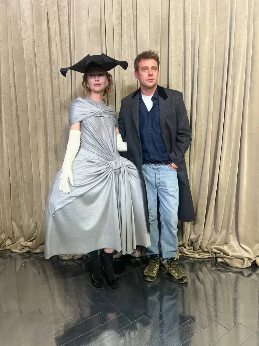 https://t.me/spletnik2006/4775637-летняя Рианна, которая недавно стала мамой в третий раз, выбрала для выхода в свет total black образ: на ней было кружевное платье и пальто "с мужского плеча". 43-летняя Наталья Водянова позировала рядом с супругом в комплекте из первой коллекции Андерсона, а 56-летняя Лоренс Санчес блистала в светло-сером платье-пальто с глубоким декольте и меховым воротником. 29-летняя актриса Аня Тейлор-Джой продемонстрировала образ из новой коллекции: бежевое пальто с массивными меховыми манжетами и цветастую шаль из шёлка. 21-летняя дочь Венсана Касселя и Моники Беллуччи Дева Кассель пришла в голубой приталенной рубашке и свободных бежевых брюках, а Ольга Карпуть, которая пару дней назад вместе со стилистом Александром Роговым посетила показ бренда Rick Owens, — в футуристичном платье с драпировкой, шляпе и перчатках.
