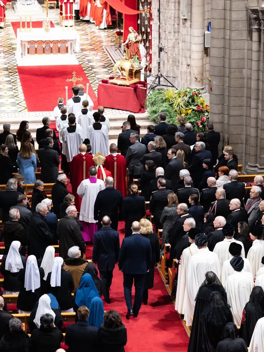 Празднование дня Святой ДевотыНа следующий день 67-летний князь Альбер II и Шарлен прибыли на утреннюю службу в собор Монако, которую возглавил кардинал Пьербаттиста Пиццабалла, латинский патриарх Иерусалима. После церемонии супруги наблюдали из окон Княжеского дворца за традиционным шествием мощей Святой Девоты по улицам княжества.
