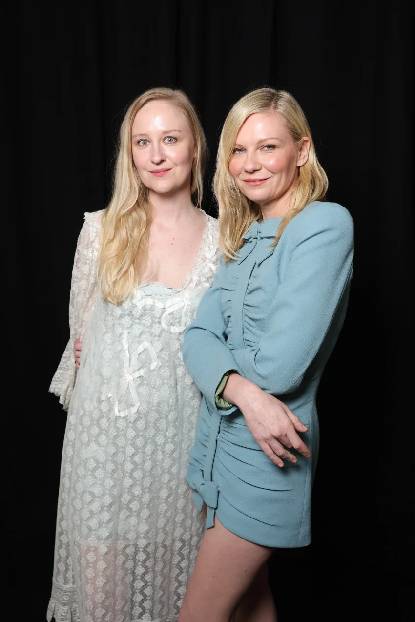 https://t.me/spletnik2006/4793536-летняя Дакота Джонсон, которая в прошлом году рассталась с фронтменом группы Coldplay Крисом Мартином, появилась в золотистой блузе с меховыми рукавами, леопардовом топе и микрошортах. 43-летняя Кирстен Данст позировала в голубом мини-платье с оборками и бантиками, а 40-летняя Лили Аллен, недавно начавшая встречаться с 28-летним праправнуком Зигмунда Фрейда, продемонстрировала оранжевую атласную рубашку в горошек с чёрным цветком-жабо и бархатную юбку миди глубокого зелёного цвета.