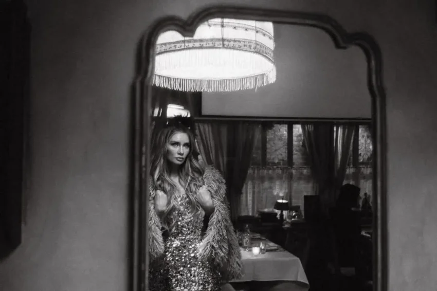 Вечер прошёл в ресторане известной сети "Мари Vanna", концепция которого полностью построена на русской культуре и ностальгии. Для фото Делви попозировала в кокошнике и на фоне полок с матрёшками.