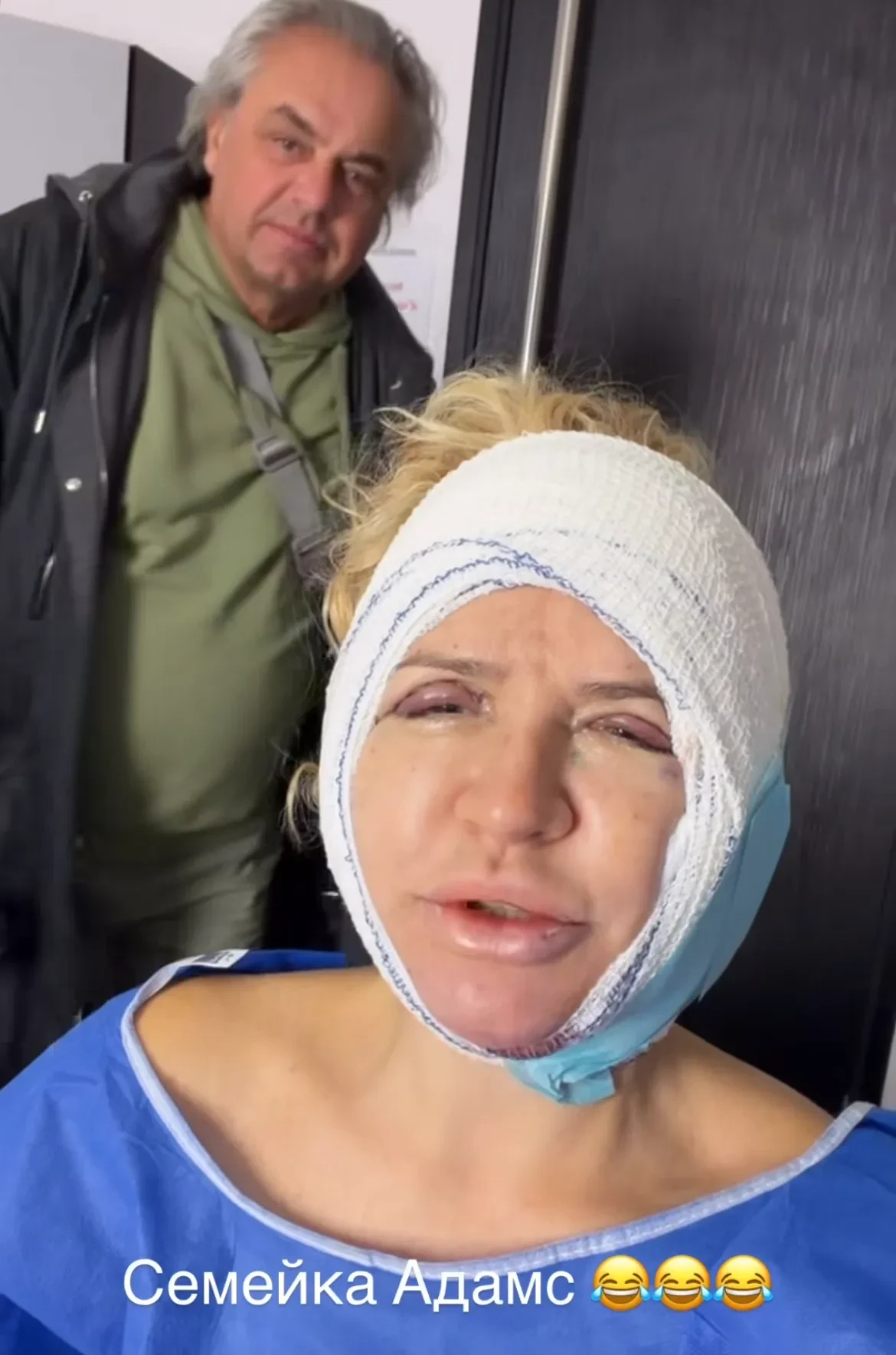 52-летняя светская львица провела в клинике пару дней, где за ней ухаживали персонал и муж, совладелец компании "Ритуал-сервиc" Олег Шелягов. Он помогал мазать швы и развлекал жену шутками.