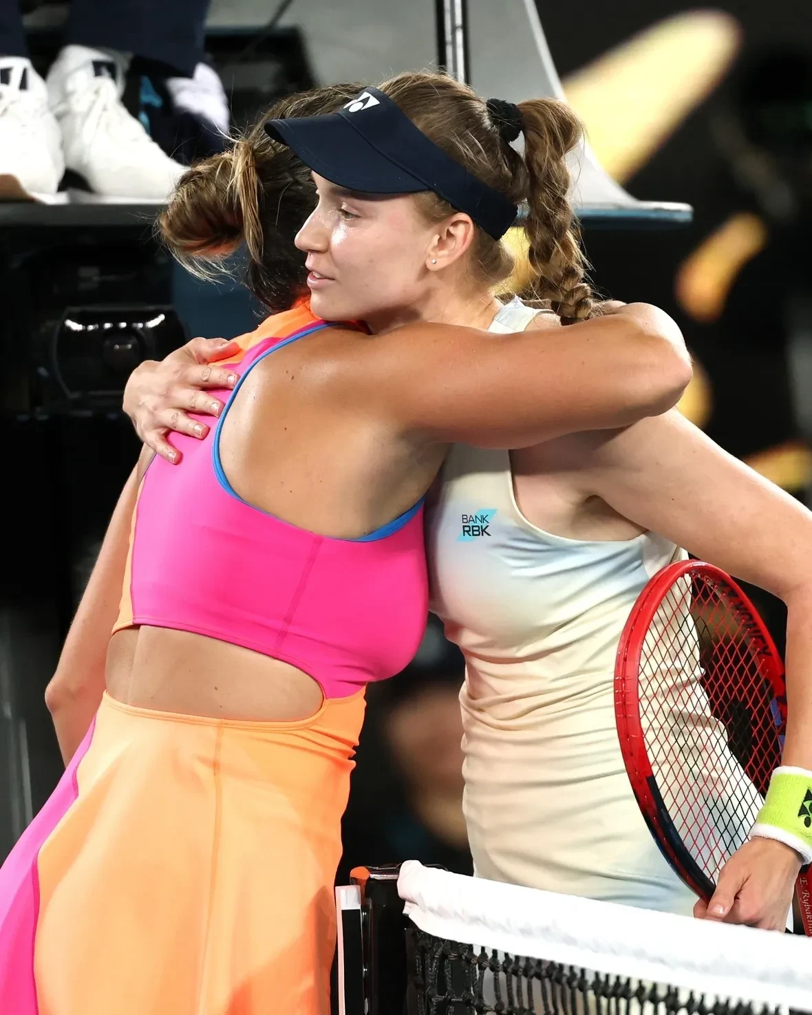 Арина Соболенко и Елена РыбакинаСтоит отметить, что осенью прошлого года Рыбакина и Соболенко оказались в центре скандала. На итоговом турнире WTA Арина грубо высказалась в адрес Елены после её победы, заявив: "Раз в год и палка стреляет, ***** (блин)". И хотя в официальных речах после встречи спортсменки поблагодарили друг друга, многие решили, что слова Соболенко были адресованы именно Рыбакиной, и раскритиковали её.
