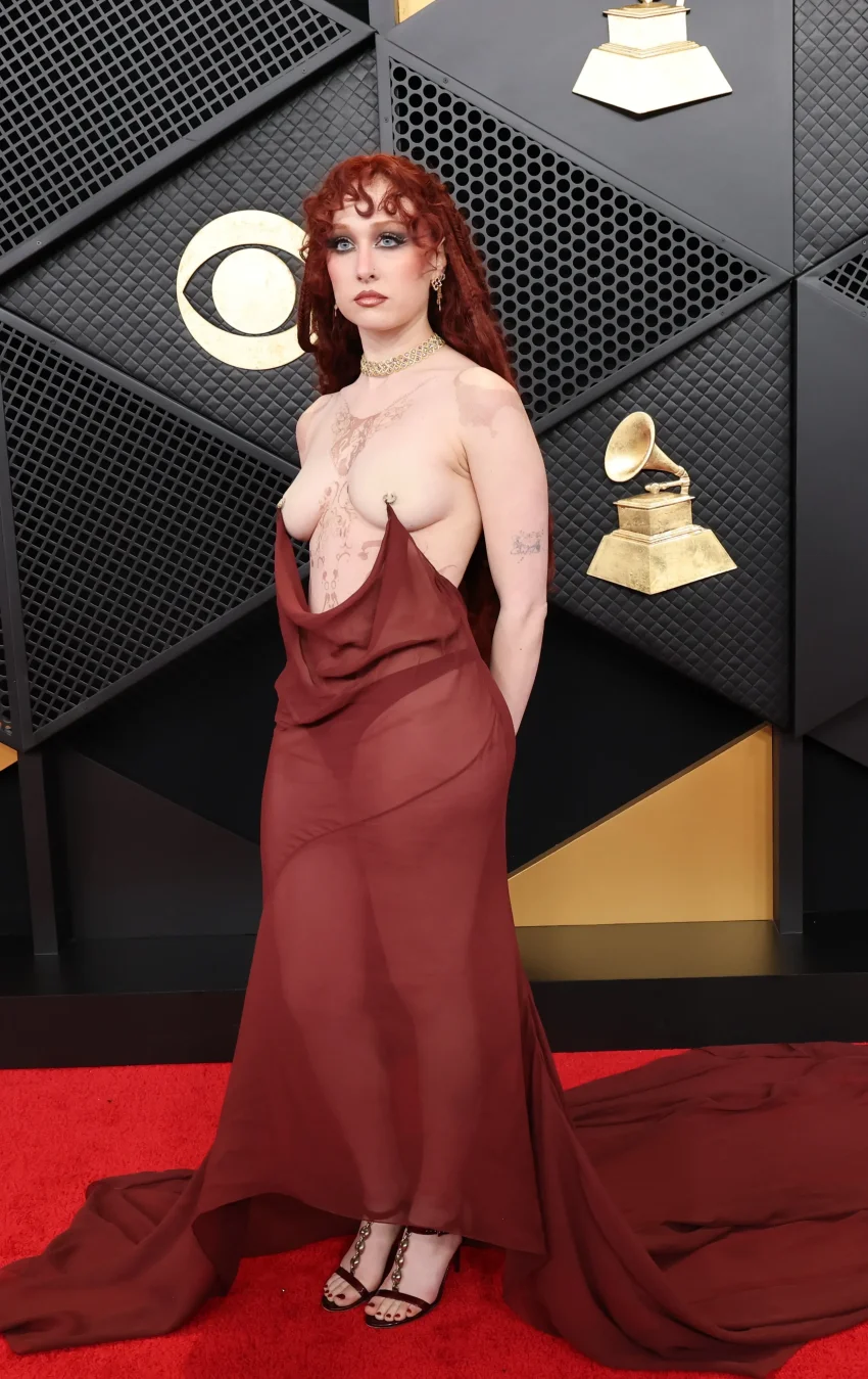 Одной из самых шокирующих и обсуждаемых тем церемонии стал выход Чаппелл Рон. 27-летняя певица появилась на церемонии в кастомном образе Mugler, вдохновлённом архивной коллекцией Тьери Мюглера 1998 года. Прозрачная ткань её платья буквально держалась на пирсинге сосков (которые оказались бутафорскими накладками). При этом тело певицы было покрыто временными татуировками.