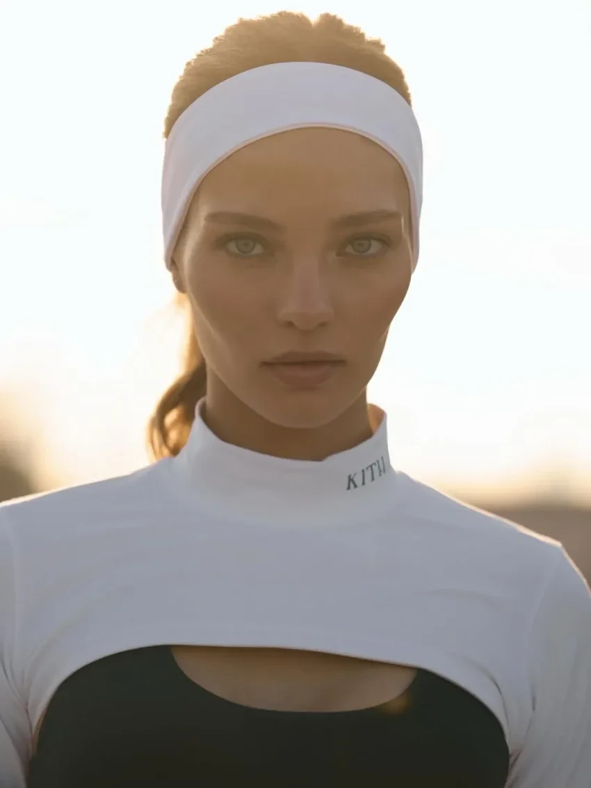 Кафельникова примерила плиссированную юбку, зелёную олимпийку, микрошорты с топом, короткий белый лонгслив и белое спортивное платье. Образы дополнили повязка на голову, козырёк и часы.