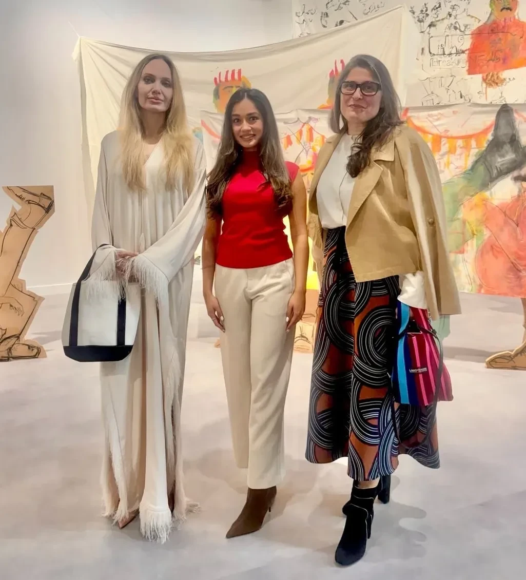 50-летняя Анджелина Джоли в длинном платье с перьями позировала рядом с художницами Анжелой Феррейрой, Айзой Ахмед и пакистанским режиссёром Шармин Обейд-Чиной, а также попала в сторис* Андрея Малахова. Наоми Кэмпбелл пришла на ярмарку в тотал-луке Gucci, в котором выходила в свет Гвинет Пэлтроу, и пообщалась с российским ведущим.